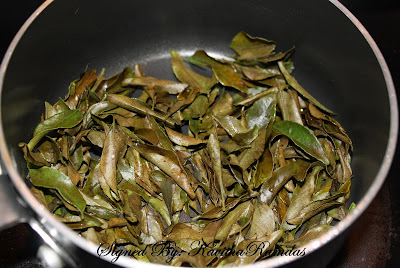 In a hot pan add some oil Fry Urad dal and Curry leaf seperatly Until color changes.