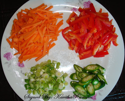 Add the bean sprouts, rice noodles, salt, sugar, pepper and soya sauce, oyster sauce, aginamoto cook stirring for 3 minutes. Set aside the filling to cool.