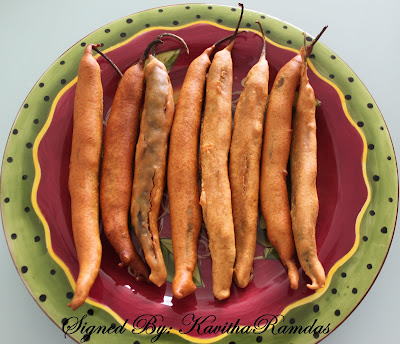 Serve it with Rice as a side dish and sprinkle chat masala to the chilli pakoda.