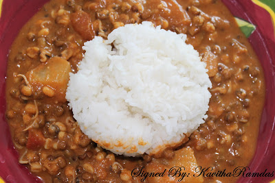 I have posted Moong curry recipe here before. For this recipe you can add potato with moong. Thats it. All the ingredients and method is same as moong curry. For this you have to add potato cut into 2 inch cube size.