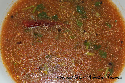 Then boil these grinded masala. I added very little sambar powder, which is prepared at home. bring it to boil. Then add chopped Coriander leaves.